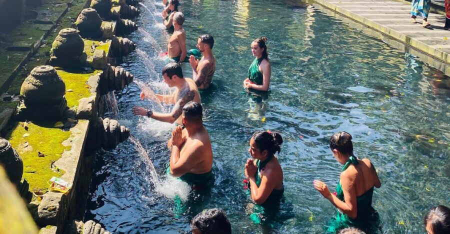 The tour then leads to the sacred Tirta Empul Holy Spring, where guests can participate in a cleansing ritual.