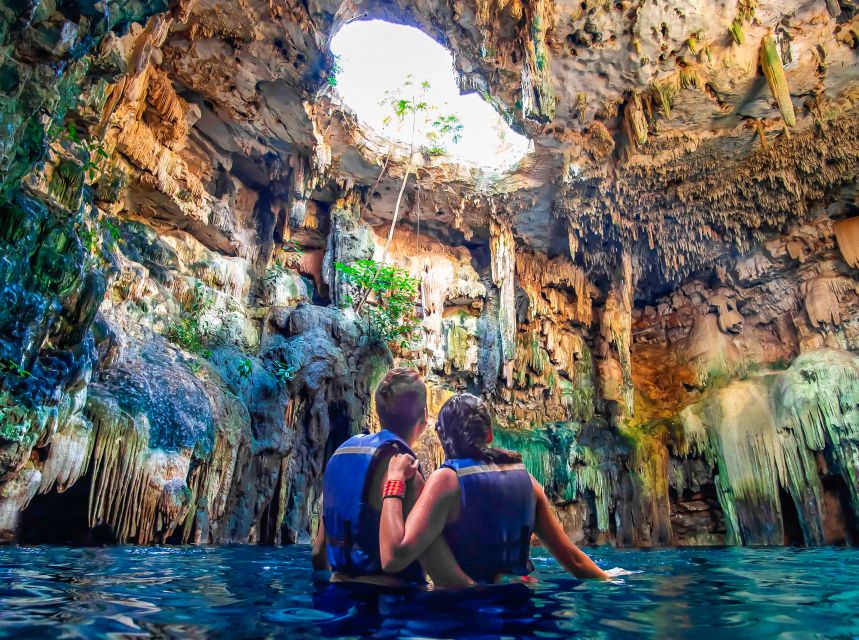 - The tour also includes a visit to the Santuario Tsukán Cenote, where travelers can swim in the crystal-clear waters of this natural wonder.